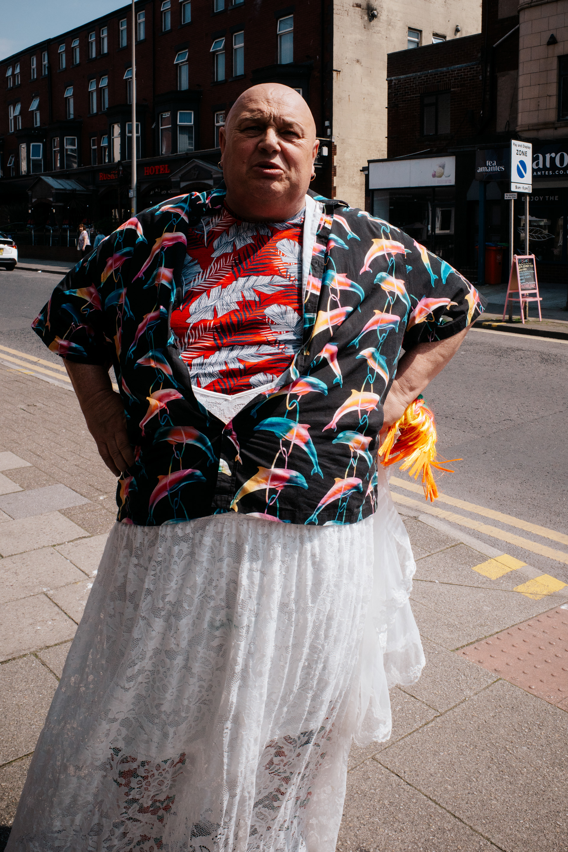 A photographic antithesis to the long-standing idiom ‘it’s grim up North’ this selection shows the rhythm of its streets, it’s heartbeat. Humorous and joyful, fun and embracing, this is Northern life as I see it and capture it. These fleeting moments in the streets of Manchester, Liverpool and Blackpool overwrite the perceived bleakness and show the hopefulness and warmth experienced. Without preconceptions these moments are more visible and the true nature of the North West is revealed.
